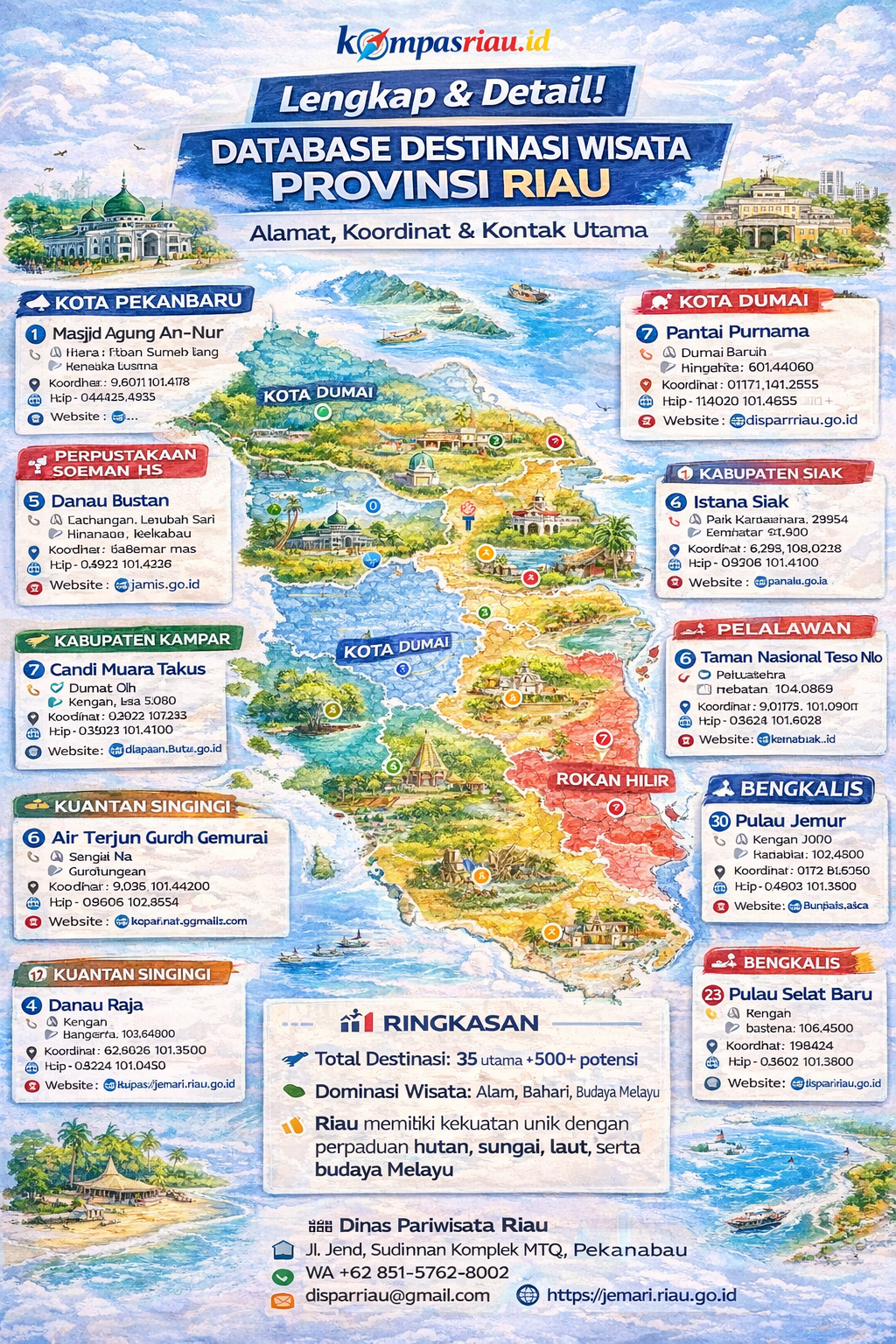 • 📍 Potensi real: 500+ destinasi di Riau