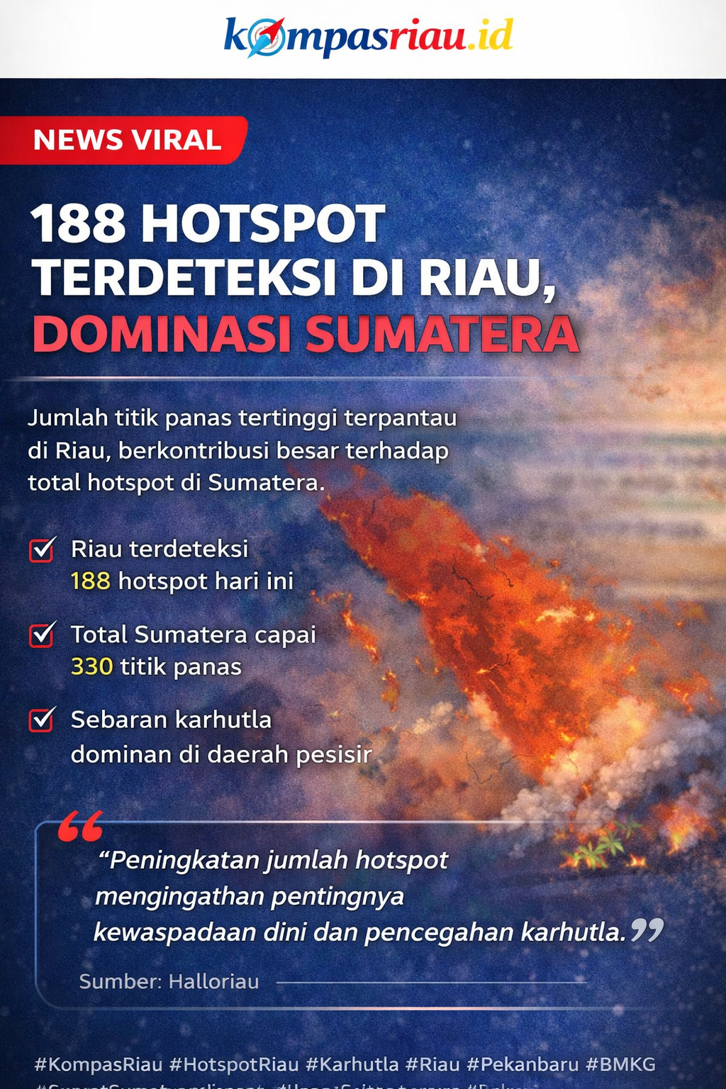 #HotspotRiau #Karhutla #Riau #Pekanbaru #BMKG #TitikPanas #Sumatera #Lingkungan #BeritaRiau #KompasRiau