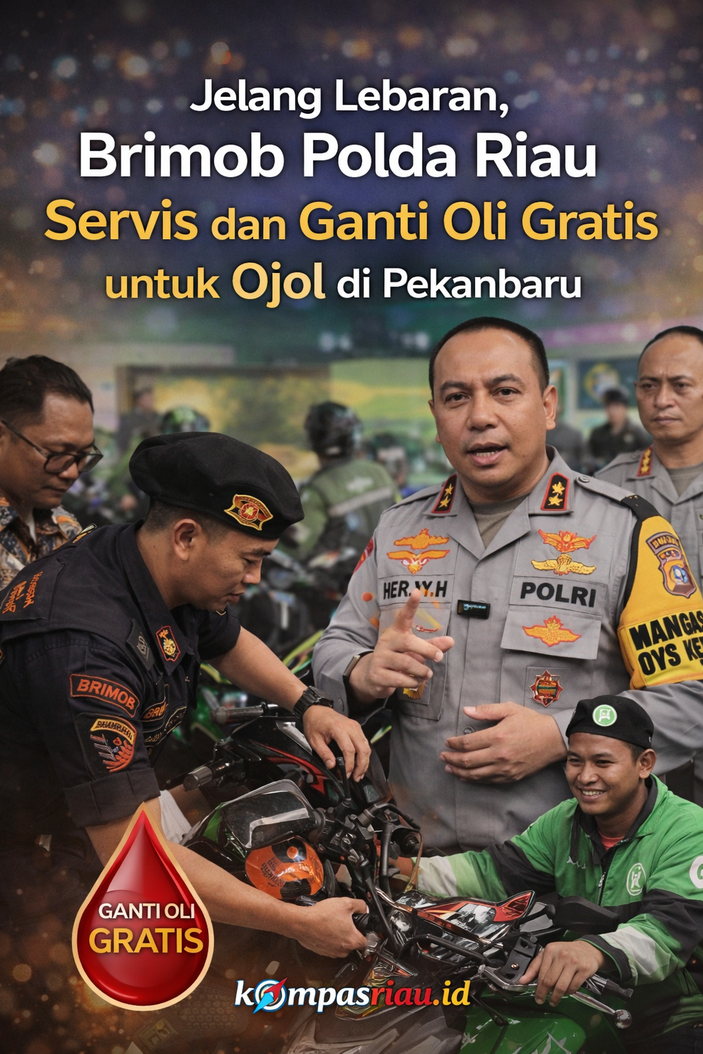 PEKANBARU — Menyambut arus mudik Lebaran, Satuan Brigade Mobil (Satbrimob) Polda Riau menggelar layanan servis motor dan penggantian oli gratis bagi para pengemudi ojek online (ojol) di Kota Pekanbaru.