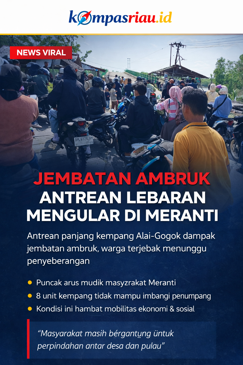 #KompasRiau #Meranti #Selatpanjang #Lebaran2026 #JembatanAmbruk #TransportasiAir #Riau #BeritaRiau #NewsViral #Infrastruktur