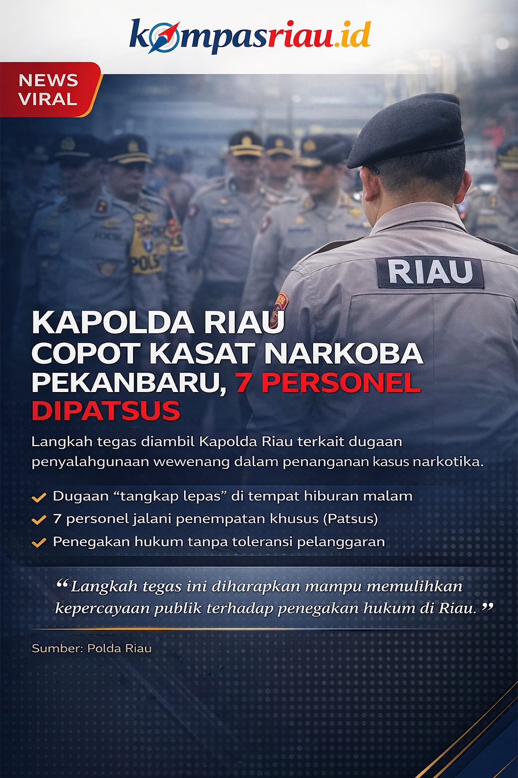 KompasRiau.id – Pekanbaru, 30 Maret 2026 – Langkah tegas diambil Kapolda Riau dengan mencopot Kepala Satuan Reserse Narkoba Polresta Pekanbaru dari jabatannya. Keputusan ini menyusul dugaan pelanggaran serius dalam penanganan kasus narkotika yang kini tengah menjadi sorotan publik dan dalam proses pemeriksaan internal kepolisian.