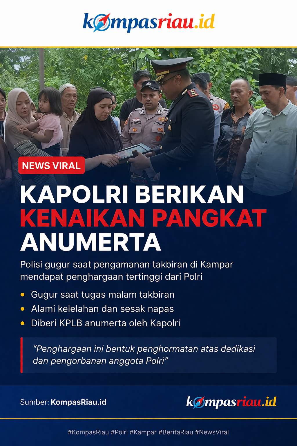 #KompasRiau #AiptuApendra #Polri #Kapolri #Kampar #Riau #BeritaRiau #PengabdianPolisi #Takbiran #IndonesiaAman