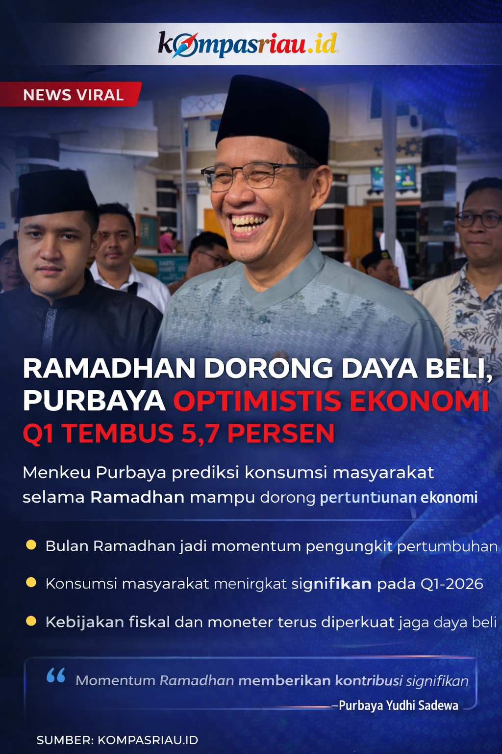 “Momentum Ramadan menjadi salah satu faktor utama yang mendorong daya beli masyarakat, sehingga memberikan kontribusi positif terhadap pertumbuhan ekonomi,” ujarnya.
