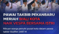 PAWAI GEMA TAKBIR SEMARAKKAN IDULFITRI 1447 H DI PEKANBARU, WALI KOTA TAMPIL NYENTRIK NAIK VESPA BERSAMA ISTRI