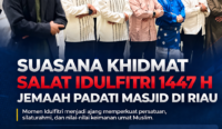 KAMPAR – Ribuan jemaah memadati Masjid Al Ihsan Islamic Center Bangkinang, Kabupaten Kampar,